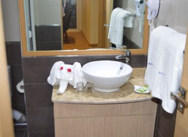 The room sizes vary from 20 to 25 sqm. They are also equipped with a fully-stocked minibar and snacks, air-conditioning unit, two comfortable chairs, makeup mirror, huge wardrobe, a soft hand-made carpet and ensuite bathroom.